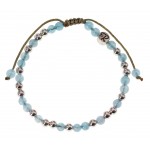Ce bracelet est composé de perles d'Angélite et de trois perles d'Argent 925. Ce bracelet est finement tissé par nos soins avec de la corde de coton.  Diamètre des perles : 4mm Corde de coton haute qualité - noir Bijou estampillé du logo Rêve de jade. Pierres naturelles - certifiées ING niveau 2 Fermeture réglable, taille ajustable Fait main à Lyon