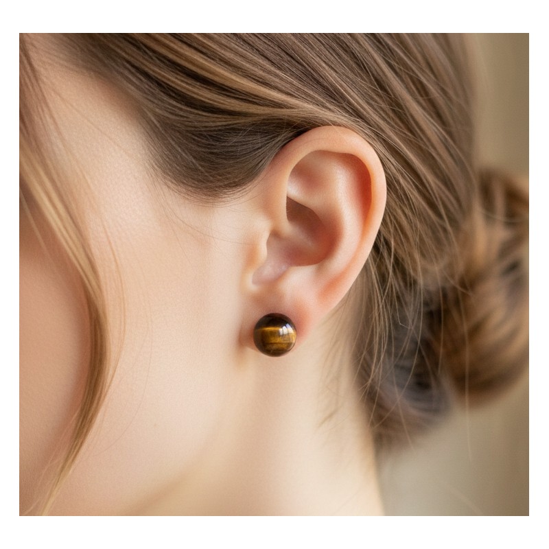 Ces boucles puces mettent à l’honneur deux perles rondes en œil de tigre naturel de 10 mm, soigneusement assorties pour offrir une belle harmonie de reflets dorés et bruns.
