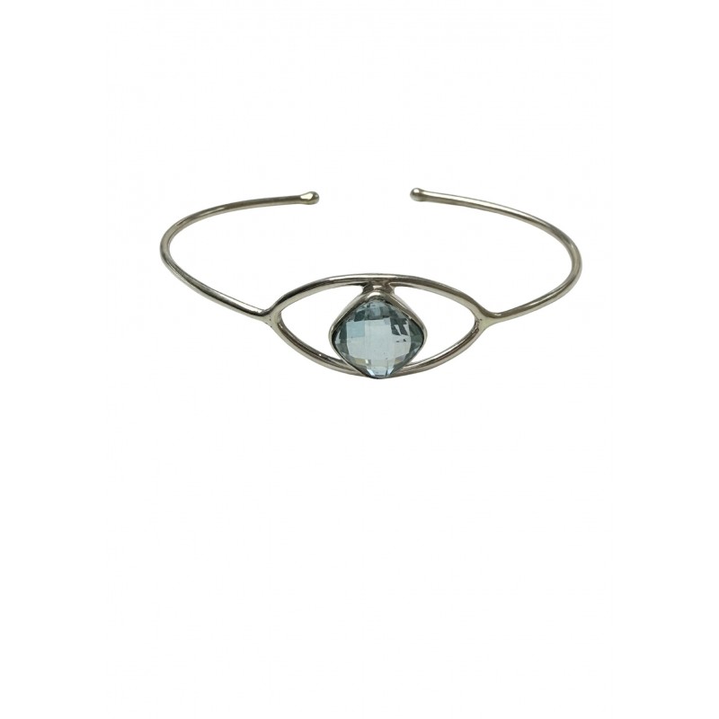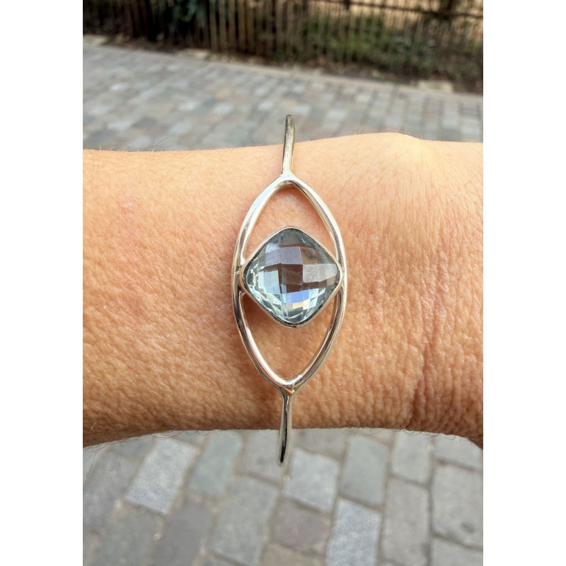 Bracelet jonc pour femme en argent 925 accompagné d'une topaze bleue facettée.