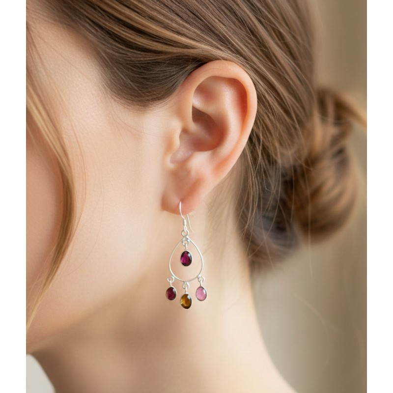 Ces boucles Cascade Tourmaline incarnent l'énergie vibrante et multicolore de la tourmaline naturelle.